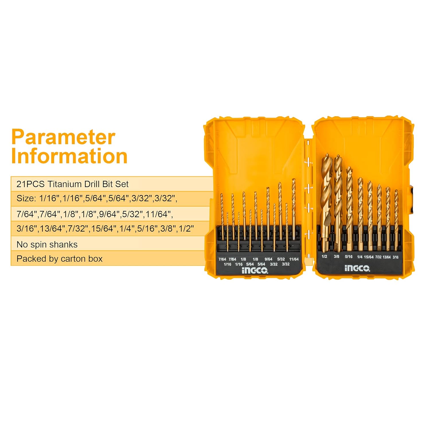 INGCO 21 Pcs Drill Bit Set with Pilot Point for Metal Wood Plastic Drilling AKDL52101